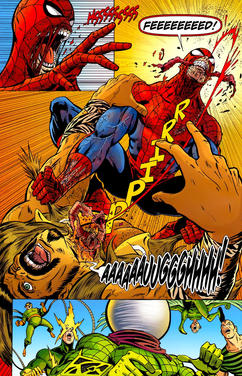 During his state of un-living, Peter and the other Zombies ravaged the world in little time, first the master of magnetism Magneto, then consuming the Silver Surfer which caused all The Zombies to gain his powers which they used to take down the big bad himself Galactus. Now taking his place and power as the Devourer of Worlds, until they had created a Fermi Paradox, having wiped out every habitable planet in the Universe in only 50 years. Here, the Zombies returned to Earth, their Hunger waning, as Peter tried and succeeded in stopping those still afflicted from eating the new humans on Earth, even taking on the zombified Hulk. After this things were seemingly going good for Peter once again, with Giant Man building a multiversal portal for the humans to have a better world to live on. But a deluded Mutant son known as Malcolm Cortez said that he liked his new lifestyle (For context it was a small world with a small batch of humans he could control) and that he would get rid of the zombie threat. As he managed to activate the newly repaired dimensional portal, sending all the Zombies including Peter to Earth-Z, stripping them of the Power Cosmic. In Earth-Z, Peter learned there was a magical tablet which he could use to rid himself of this curse. During this adventure he tried his hardest to control his Hunger, and fight the Sinister Six non-lethally, but it simply was not enough, much to his dismay. As his actions resulted in the death of that world's Peter Parker, him infecting the Sinister Six who killed all his friends, which then resulted in Peter killing every last one of them in a fit of pure rage. These actions made Peter view himself as a joke who didn't even deserve to wear the mask of Spider-Man, Hell he didn't deserve to even have the skin of Peter Parker, as he began slowly ripping off his skin in disgust.